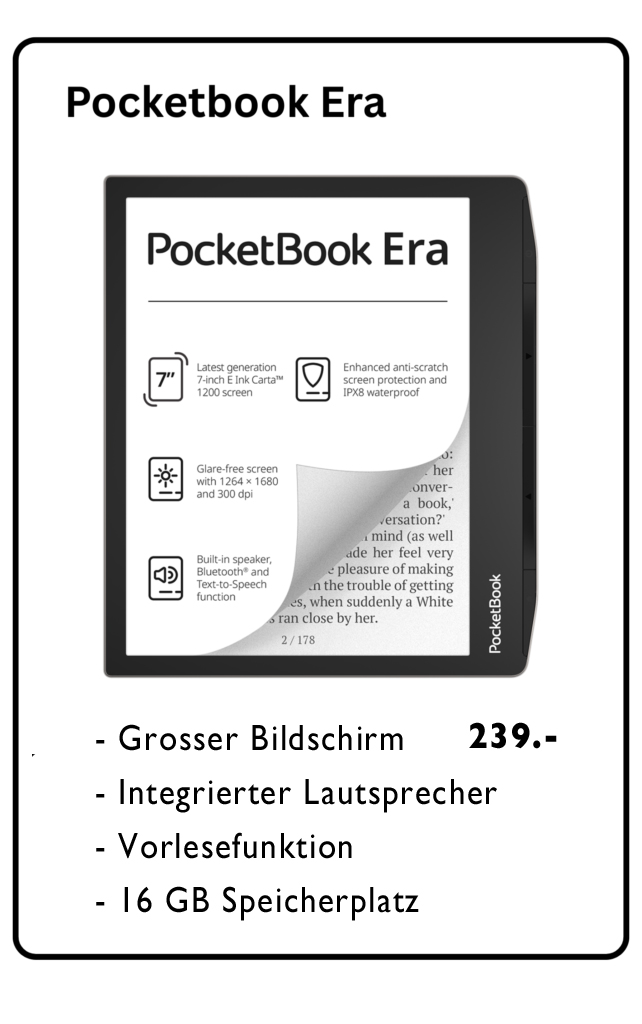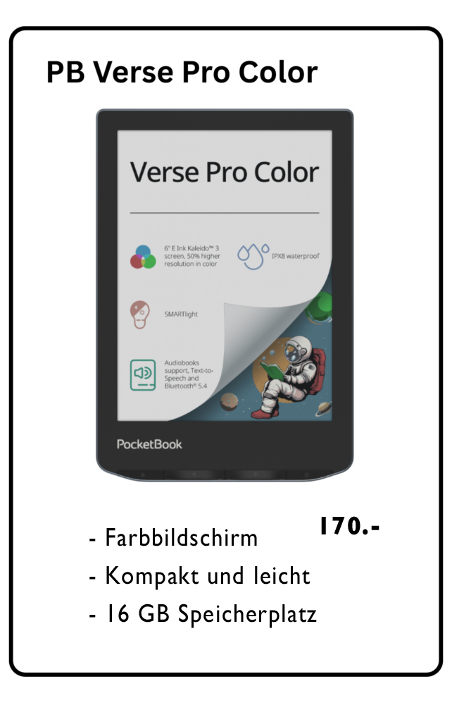 Wir verkaufen die E-Reader der Schweizer Firma PocketBook, weil sie uns überzeugen. PocketBook ist einer der weltweit grössten Hersteller von E-Ink-Readern mit Sitz in Lugano. Die Firma überzeugt mit hochwertiger Hardware, ergonomischem Produktdesign und guten und schnellen Softwarelösungen. So garantiert PocketBook seinen Nutzer:innen ein komfortables Leseerlebnis an jedem Ort und zu jeder Zeit.